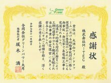 このたび、大洞山ウィンドファーム風車工事において、 無事故無災害での完遂が評価され、合同会社グリーンパワー大月様より感謝状を賜りました。 日頃よりご協力いただいている関係各位、 ならびに安全施工に尽力した社員および協力会社の皆様に深く感謝申し上げます。